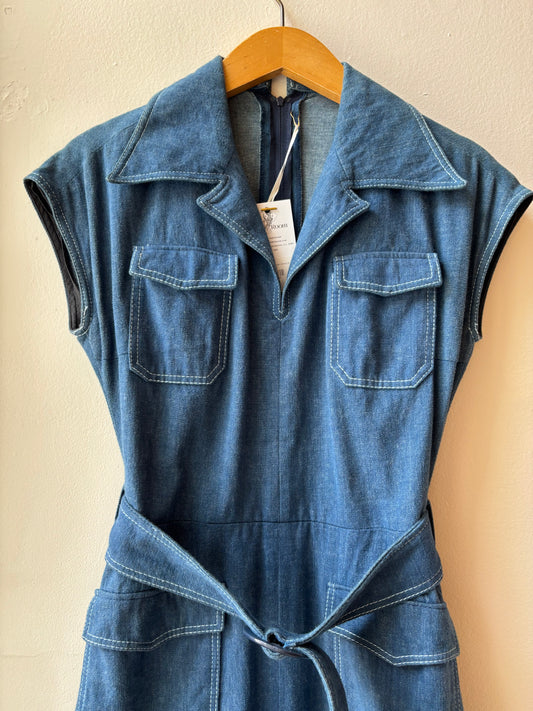 70's German Cotton Denim Dress [S]