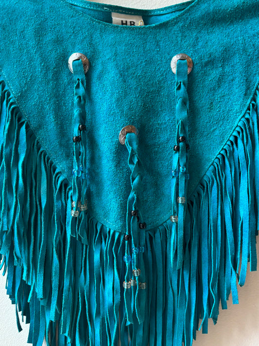 80's Leather Suede Fringe Shawl Collar
