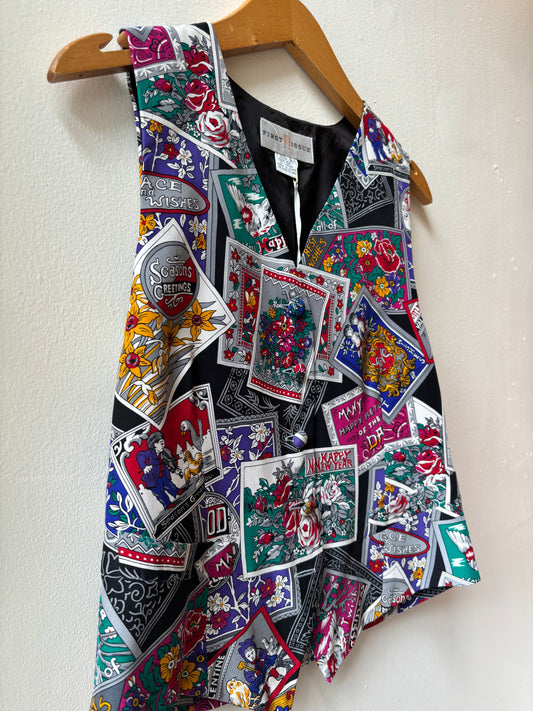 Vtg Silk Postcard Vest [s]